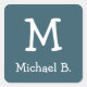 White Monogram and Name on Blue Rounded Square Square Sticker