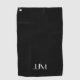 Golf towel with white three initial monogram or name on a black background. Personalise with your three initial monogram or name using the easy template. Font colour, font style, and font size are customisable.