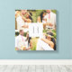 This classic multi-photo design features a white square with a grey monogram outlined with a sheer white layer. This custom canvas allows space for 4 wedding photographs from your special day.