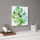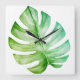 White Monstera Leaf Botanical Tropical Square Wall Clock