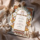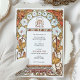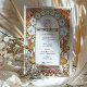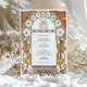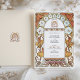 This exquisite Art Nouveau wedding invitation features a vintage-inspired design adorned with intricate floral artwork. The border highlights elegant white morning glories with pink centres and orange lilies interwoven with graceful gold-toned leaves and swirling accents. The harmonious arrangement combines soft pastel hues with earthy, warm tones, creating a romantic, timeless feel. The symmetrical floral framing enhances the refined central space for event details, making this design ideal for couples seeking an elegant and nature-inspired wedding theme. The artistic style pays homage to early 20th-century Art Nouveau aesthetics, celebrated for its flowing lines and botanical motifs.