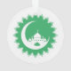 Silhouette in white of a mosque in a crescent moon with a decorative border. The background is green but can be customised to any colour you like. Perfect for the month of Ramadan.