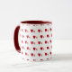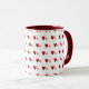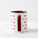 11oz white mug featuring a playful pattern of dark wavy red hearts with smaller light red hearts, complemented by a matching dark red handle and interior. Perfect for cozy coffee moments or as a charming gift.