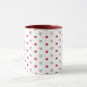 11oz white mug featuring a charming pattern of dark red solid hearts and hollow hearts outlined in dark red, with a matching dark red handle and interior. Perfect for cozy coffee moments or gifting someone special.