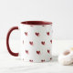 11oz white mug featuring a bold pattern of dark red hearts with filled centers. Perfect for adding a touch of romance to your coffee moments or gifting someone special.