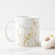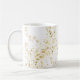 Beautiful white mug with golden stars for hot coffee, milk, tea