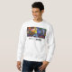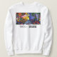 White crew neck sweatshirt featuring the mural by Bradford Johnson from our headquarters.