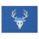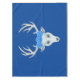 This table cloth is dark blue with a mythical white deer head wearing three light blue roses with big white antlers.
