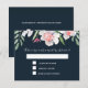 This floral watercolor style RSVP is printed with a border of white and pink narcissus and foliage on a dark navy background. Menu entree selection options on the reverse side. Text is in white. All pre-formatted and ready for you to edit with your own details. See the matching invitation and more pieces and other colour options in this collection at MonogramsandMonikers on Zazzle.