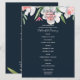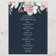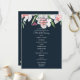 Tasteful wedding ceremony program designed with borders of white and pink narcissus flowers on a dark navy background,. Double sided design with ceremony on front side and bridal party details and thank you text on the back. All text is formatted and ready for you to simply replace or remove where needed in the "Personalise this template" button. You can customise further in that bottom link. Coordinates with the formal invitation and a whole wedding stationery collection in this design, choosing from 3 colours.