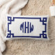 White Navy Blue Circle Monogram Greek Key DIY BG Lumbar Cushion
