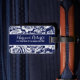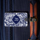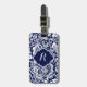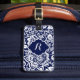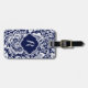 Elegant white and navy blue vintage floral damasks with customisable monogram and text on 2 sides.