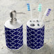 White Navy Blue Trendy Quatrefoil Bathroom Set