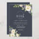 White & Navy Flowers Beautiful 80th Birthday Party Invitation