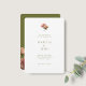 Modern and trendy with vintage feel. This lovely wedding invitation features a bouquet of voluptuous rose accents against chic white and olive green backgrounds. The set of contemporary fonts exude a stylish modern elegance. Personalise with wedding website and RSVP detail at the back.