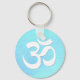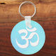 White OM Symbol Turquoise Blue Shimmery Look Key Ring