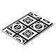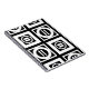 Bold geometric pattern features four white squares with space between them on a black background. The diagonally opposed thick squares each contain a thin white circle with a thick equal sign inside. In contrast, the thin squares each contain a thick white circle that touches the square’s edges with a thin vertical equal sign inside.