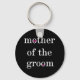 Mother of the Groom keychain with white text, fuschia hearts on a black background.