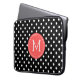 White On Black Polka Dot Coral-red Accents Laptop Sleeve