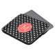 Elegant white polka-dot pattern over customisable black background colour. Coral-red circles accent with customisable and optional monogram.