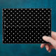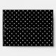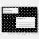 Destei's white polka dots pattern on a black background color. There are two personalizable text areas on white backgrounds as well. One is for the return address and the other is for custom title for the mailing header.