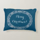A chic Christmas Pillow or Cushion to customise with a Christmas wreath of holly, ivy, poinsettias, fir cones and sprigs of fir tree. This hand-drawn Christmas wreath is in White on a Blue background that you can change if you wish, with 'Merry Christmas' also in White, which you can also change.