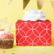 A wrapping paper designed with an overlapping circle pattern, white on red. Customise the red background in an easy way.