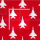 White on Red Strike Eagle Fighter Jet Pattern Fabric