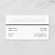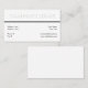Your company name appears to be embossed on this white-on-white business card. A single black bar separates the business name at the top from the information at the bottom. Very sharp, professional, and easily adaptable to many professions, such as legal, finance, consulting, event planning, health care, house cleaning, hospitality, and more.