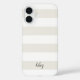 Chic personalised case features white and ivory stripes with your name, monogram or favourite phrase in black calligraphy script lettering. Classic preppy design is perfect for adding both style and protection to your phone in a trendy pastel colour palette.