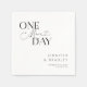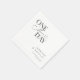 Minimalist wedding rehearsal dinner welcome napkin featuring typography text that says "one more day." The background is white.
