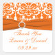 This 1.5" square white and orange damask wedding favour thank+you sticker and/or envelope seal has a bright orange PRINTED ribbon and a PRINTED on diamond and jewels buckle on it that matches the wedding invitation shown below. You can also choose a 3" size. ****PLEASE use caution if you change the font or font size, or the sticker shape, as some of the text or design may get cut-off in printing. Everything will print as it appears on your monitor. No corrections will be made to anything. The safe zone for the text is at the outside edge of where the L's in the names are now. If your text extends beyond that, it may get cut-off. Contact me below for help getting your text to fit. If there are any other matching items you require, please email your request to niteowlstudio@gmail.com.