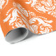 Elegant white floral damasks in a geometric seamless pattern over halloween orange background.
