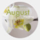 "White Orchid" August Wedding Sticker. Perfect for use as an elegant and stylish letter seal on your save the date reminder, engagement announcement or wedding invitation envelopes.
