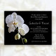 Keep celebrating the newlywed bride and groom the morning after their marriage ceremony with the pretty White Orchid on Black Post Wedding Brunch Invitation. This elegant custom flowery After Wedding Breakfast or Luncheon Invite features a floral photograph of white phalaenopsis orchid flower blossoms on the stem with a black background.