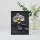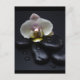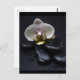 Calming and minimal white orchid in stark contrast against black zen stones design.