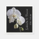 The pretty White Orchid on Black Wedding Paper Napkins will add an elegant flair to your bridal shower or marriage reception. These elegant custom botanical wedding disposable napkins feature a floral photograph of white phalaenopsis orchid flower blossoms on the stem with a black background.