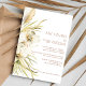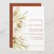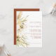 Trendy watercolor white floral, tropical palm, and pampas grass wedding invitation with a modern style terracotta typography over an elegant classy clear white background. +++++++ Suitable for summer garden or seaside desert destination classy contemporary weddings.