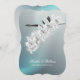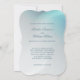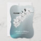 Wedding invitation featuring a delicate and elegant design with beautiful white orchid blossom on silky teal blue background.