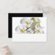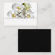 White orchids blank wedding place, or escort cards. Buy in bulk, small cards to use to seat guests at a wedding reception or special event. Hand-write names (and table number if needed) on white strip at the bottom. Realistic white orchids with yellow centres decorate the top part of the cards. Reverse is solid black.