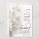 This beautiful wedding invitation features a gorgeous design with a sprig of dreamy white orchids. The right justified burgundy coloured text features a fancy calligraphy script with a long curly tail making it both modern and classic. Elegant, sophisticated and chic way to invite your friends and family to share in your special day. The back of the card has a QR code for your wedding website and a brief note instructing people to visit the site for details and RSVP.