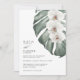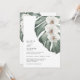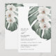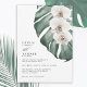 White Orchids on Monstera Tropical Wedding Invitation