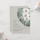 Bring your dream wedding vision to life with this uniquely beautiful all-in-one tropical wedding invitation design. It features a trio of elegant white orchids and a beautiful Monstera leaf in painted watercolors on a light sage green background along with your wedding website QR code on the back. Having your wedding website QR code on the back of the invitation makes it easy for your guests to send their RSVPs and find important details about your wedding day. The design is both simple and elegant with a minimalist look energised by the tropical botanical elements. This invitation is a wonderful choice for coastal weddings, destination weddings or even city weddings that use a magical tropical theme.