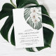 Plan a beautiful tropical themed 50th wedding anniversary celebration with this posh botanical design. It features a trio of elegant white orchids and a beautiful Monstera leaf in watercolor hues. The design is both simple and elegant with a neutral minimalist look energised by the tropical botanical elements. Whether you're celebrating a golden anniversary around a pool or in and around a coastal area, this design pops with island style and floral sophistication. Personalise the easy-to-use text template with your event details.