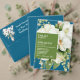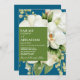This elegant wedding invitation features a stunning white orchid, symbolising beauty and refinement, set against a serene teal blue background. The contrast between the delicate orchid and the vibrant teal creates a sophisticated and modern look, making it perfect for couples seeking a fresh, yet timeless design for their special day. The subtle yet striking details of the invitation reflect the elegance of a romantic celebration, ensuring that your guests are immediately captivated. This exquisite design is ideal for a variety of wedding themes, from tropical and destination weddings to more intimate, formal affairs.