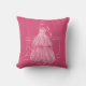A sketch of a woman in a beautiful gown in white against a brushed pink background.