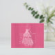 A sketch of a woman in a beautiful gown in white against a brushed pink background.