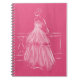 A sketch of a woman in a beautiful gown in white against a brushed pink background.