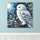 White Owl On Branch in Moonlight Painting Canvas Print