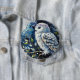 White Owl On Branch in Moonlight Personalised 10 Cm Round Badge